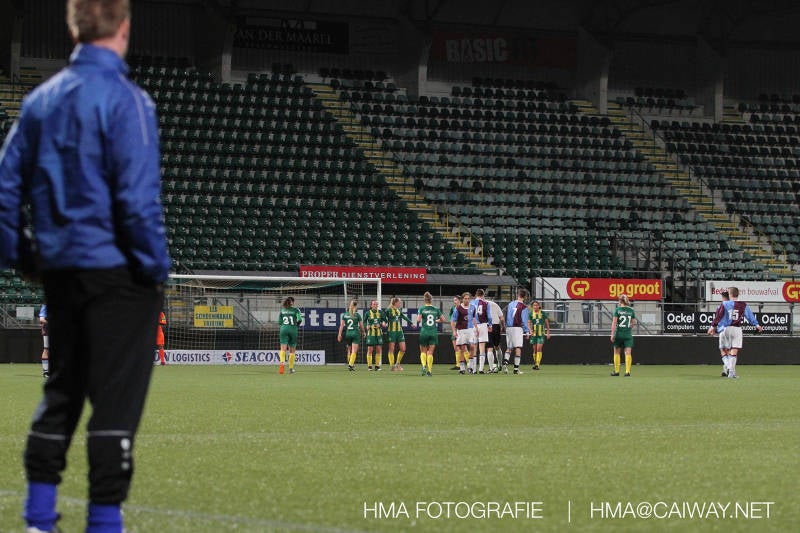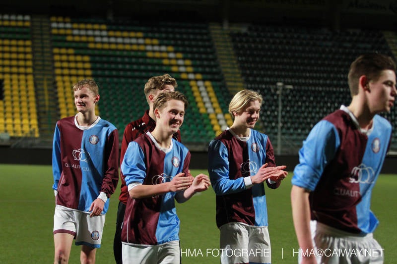 De meeste spelers en zeker jeugdspelers dromen ervan om ooit een keer in een stadion te mogen voetballen. De jongens van O-17 overkwamen dit 2 keer in 14 dagen tijd. Eerst was er het trainingskamp in Hellendoorn, alwaar er een oefenwedstrijd gespeeld werd in het Heracles stadion. En vrijdag 19 januari moest er aangetreden worden in het ADO stadion tegen de dames 1 van de ooievaarstad. Het was allemaal prachtig geregeld, de ouders/opa’s/oma’s konden door de hoofdingang naar binnen en gebruik maken van de skybox.