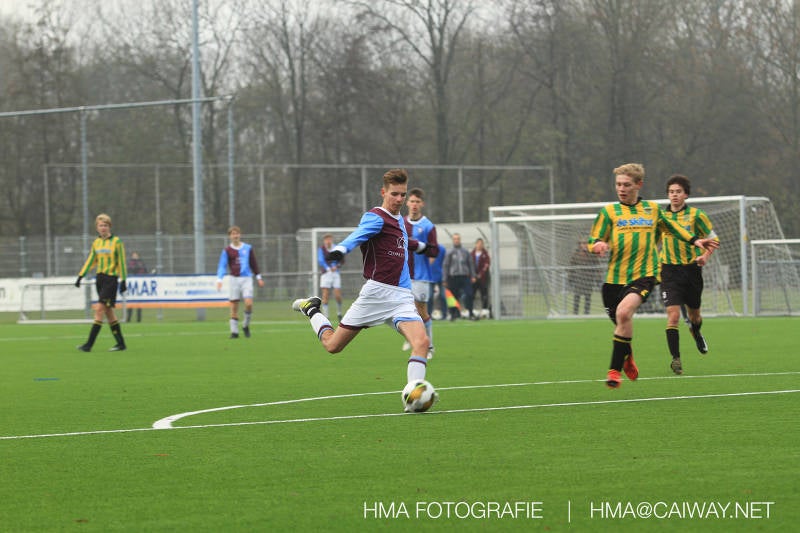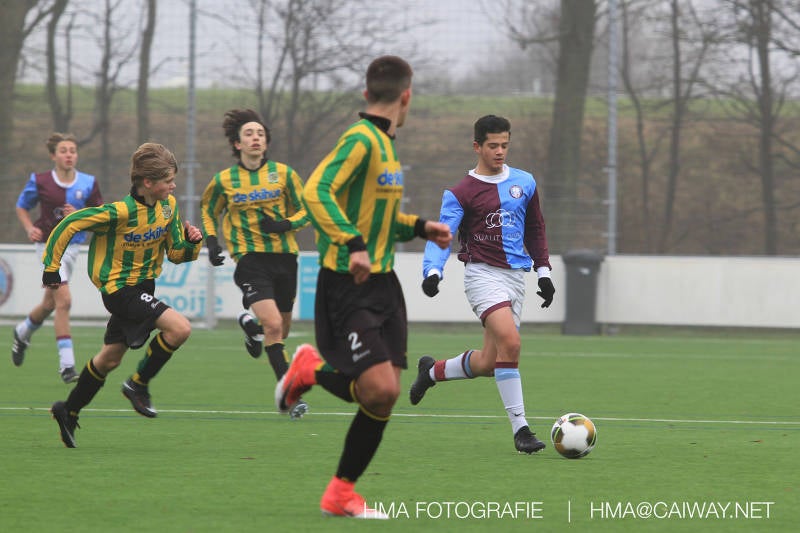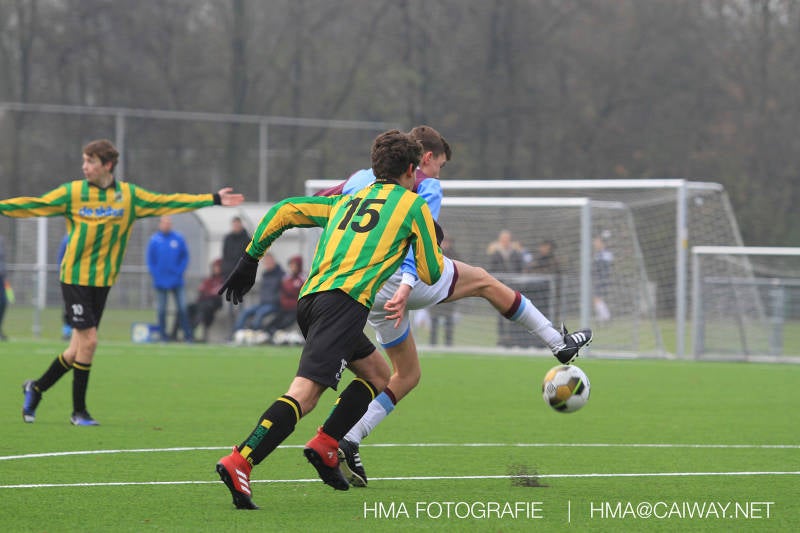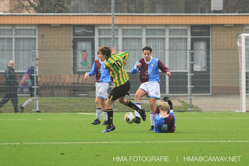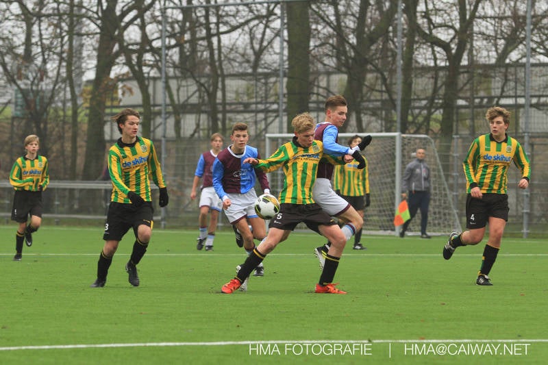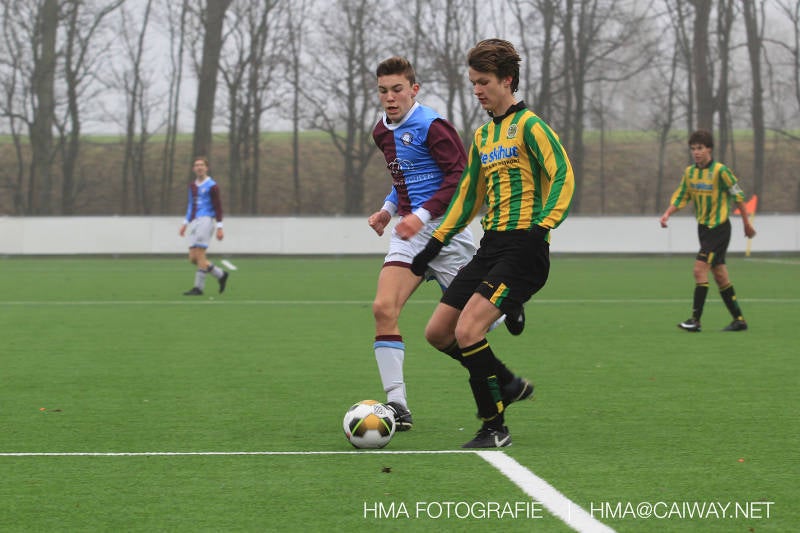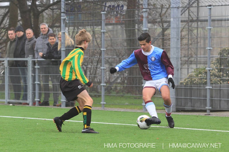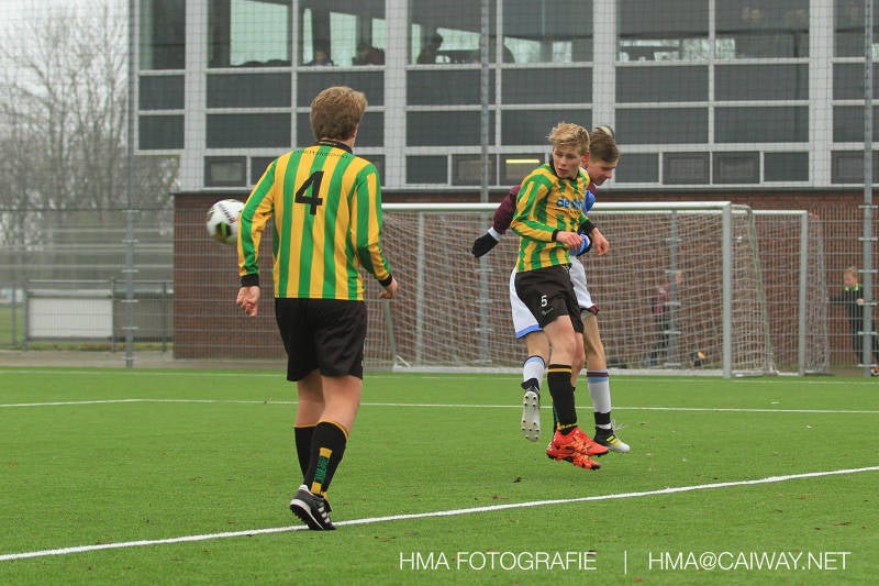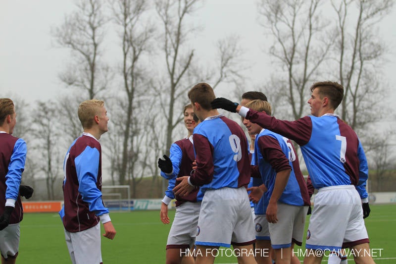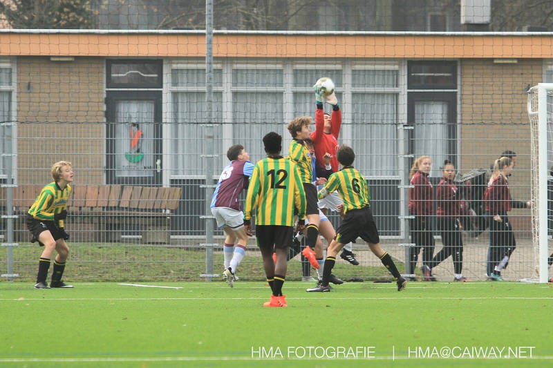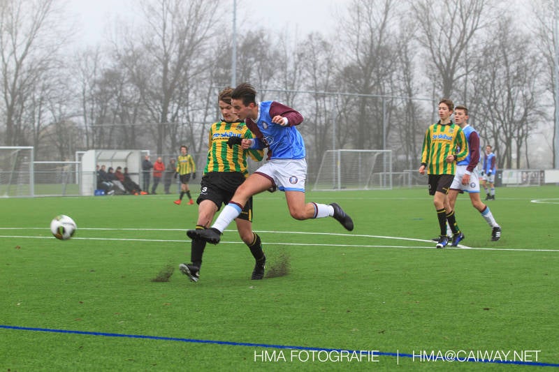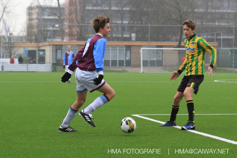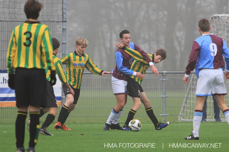 Het was duidelijk te zien in de beginfase van de thuiswedstrijd tegen Graaf Willem dat de spelers hard werkten om de tegenstander onder druk te houden. Dit leverde dan ook een aantal kansen op. Met kunst en vliegwerk wist de keeper van Graaf Willem met steun van zijn verdediging de bal uit het doel te houden. Er werd geschoten,gekopt een volley een omhaal echter geen enkele poging ging over de doellijn. Het middenveld bestaande uit Andreas,Ahmet en David werkte hard om de aanval te steunen in het veroveren van de bal. Heel soms kwam Graaf Willem er snel en gevaarlijk uit, vooral de linksbuiten liep een paar keer richting de achterlijn om voor te zetten. Eenmaal gebeurde dat zo goed dat de bal langs de verdediging van Monster op de rand van de zestien ingeschoten kon worden. De poging kwam op keeper Dokan zijn grote teen en verdween net over de lat. Dat was even schrikken. In de laatste minuut van de eerste helft kreeg Monster eindelijk hun verdiende beloning. Scheidsrechter Postma gaf een hoekschop cadeau en het was Thijs die de bal richting tweede paal voorgaf. Hidde probeerde in te koppen, maar de bal smoorde tegen een verdediger. Duko dacht het vrijgekomen projectiel in te schieten echter de keeper redde. De rebound stiftte Duko in het dak van de goal. Na deze 1-0 was het rust. Na rust begon Monster weer met druk zetten en kreeg een paar goede mogelijkheden. De onzekerheid door het uitblijven van het tweede doelpunt werd groter, en het was vooral in die fase dat Stuart en Guus goed rugdekking gaven aan de backs Boris en Riley. Trainer Arjan bracht Jim in voor de leeggestreden Ahmet en ging 5-3-2 spelen door Thijs naar de kant te halen voor de herstelde Boy. Het blok wat nu achterin stond kon zodoende de opkomende middenvelders en laatste man van Graaf Willem opvangen. Dit lukte uitstekend op 1 moment na. De snelle rechtsbuiten was Riley ontglipt en ging richting de goal van Dokan.Hij schoot en de bal ging gelukkig voor de paal langs over de achterlijn. Het laatste fluitsingaal had geklonken en een welverdiende ovewinning werd gevierd waarvoor sc Monster keihard had geknokt! De laatste competitiedag volgende week kan er van alles gebeuren. Verburch is de opponent, terwijl de concurrenten ook moeilijke wedstrijden spelen.