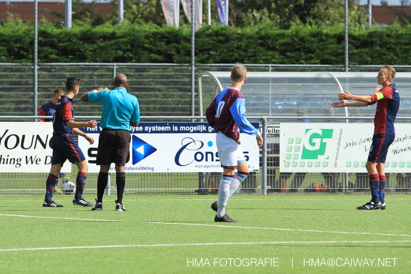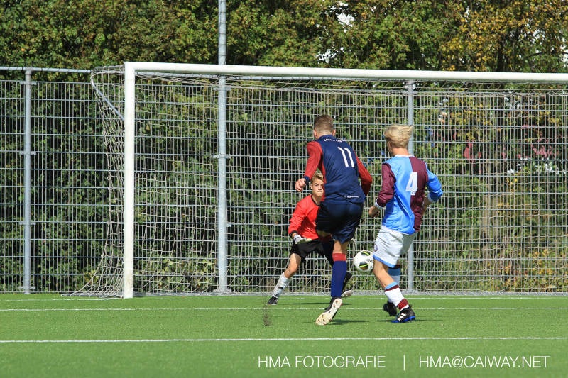 De spelers van 's-Gravenzande hadden na hun 6-0 nederlaag bij GDA vorige week flinke straftraining gehad en bewogen nu als hyenas op het veld om eerherstel te halen.De ene aanval na de andere golfde op het goal van Niels van der Meer neer. De bal kon de eerste helft niet worden veroverd en ook de inspeelpassen werden te veel onderschept. Kortom het enige wapenfeit was een volley van David Borgdorff in de 38e minuut, maar toen stond er al 5-0 op het scorebord. Na een donderpreek van de trainer werd er in de tweede helft keihard gewerkt om de schade zo klein mogelijk te houden. Riley van Eijkelenborg verving de geblesserd aan de wedstrijd begonnen Guus Faber, en Andreas Harinxma kwam in het veld voor Roy van de Ven die na een sliding een bebloede knie had. Scott de Jong en Bo Olstoorn hadden meer controle over de buitenspelers. Ahmet Ayylidiz werkte keihard om de ballen op het middenveld te veroveren en als dat lukte direkt naar de voorhoede gespeeld. De wedstrijd was nu in evenwicht en na een duw in de rug van Duko Blans werd de bal terecht op de stip gelegd. Duko schoot beheerst in de hoek en de zo stond het 5-1. Thijs Looije sleurde,rende,sprong,draaide als linksbuiten. Hidde van der Arend laat nu aan de rechterkant zijn tegenstander dikwijls zijn hielen zien. Dat er door zoveel werklust ook 2 tegendoelpunten komen is niet erg. Door een swalbe van de spits van 's-Gravenzande gaat de bal ook voor hun op de stip. 6-1 Dan via een vloeiende aanval schiet Hidde de bal in de verre hoek en is het 6-2. Bij een scrimage in het doelgebied schiet Boy Hoevenaar, die in de 2e helft zijn tegenstander goed in bedwang had, de bal hard weg. En via de kluts komt het projectiel bij een tegenstander in de voeten die de bal in de rechterbovenhoek schiet, 7-2 eindstand. Rowdy Kruithof en Jim Meijer maken ook nog hun minuten. Met nog 1 bekerwedstrijd te gaan kunnen jullie de geleerde momenten straks uitvoeren in de eerste klasse. Thijs had nog iets bedacht dat hij niet terug hoefde te fietsen en deed zijn jasje met telefoon en sleutels in de tas van Riley. De rest fietste rustig weer huiswaarts.